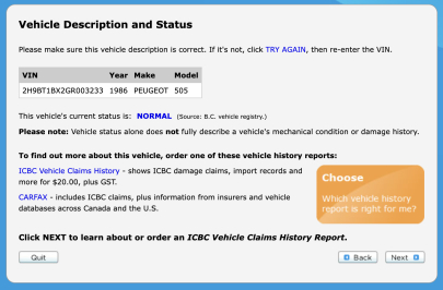 Photo Serial # Series Model Year Body Style Last Known Location Province/State