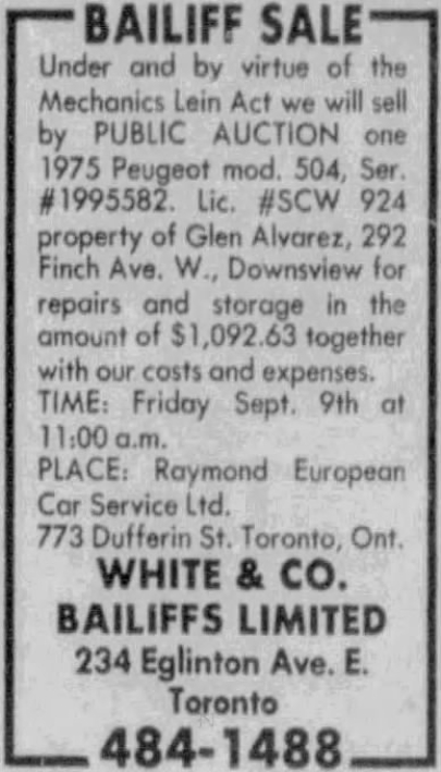 1995582 504 1975 FOUR DOOR SEDAN TORONTO ON