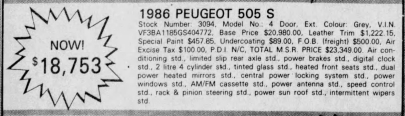 404825 505 1986 FOUR DOOR SEDAN VANCOUVER BC