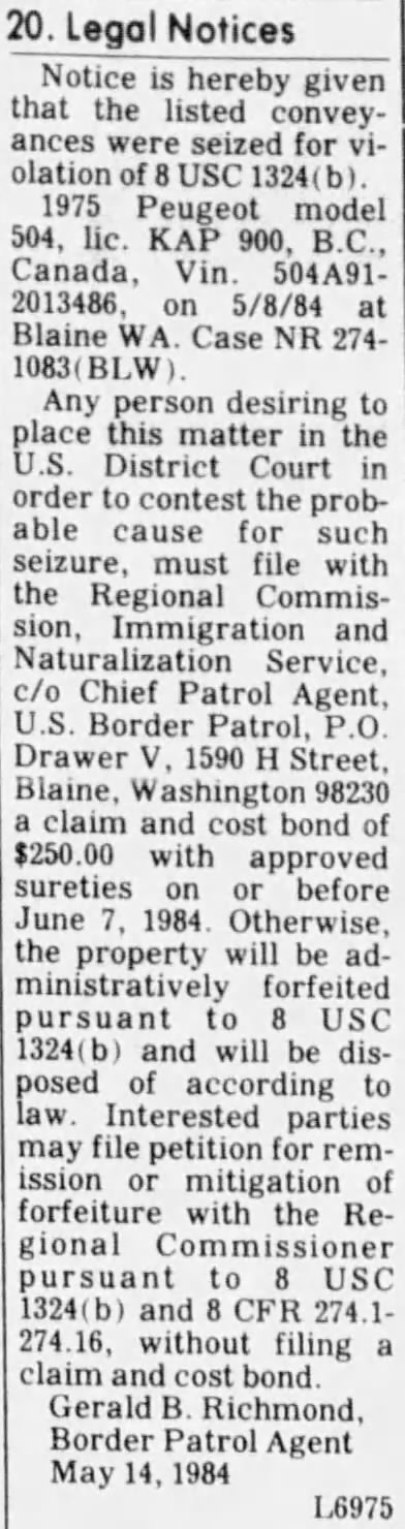 2002527 504 1975 FOUR DOOR SEDAN BRITISH COLUMBIA BC