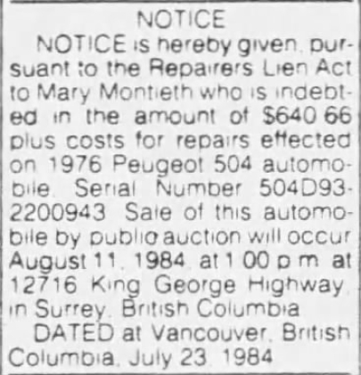 2200740 504 1976 4 DOOR STATIONWAGON BRITISH COLUMBIA BC