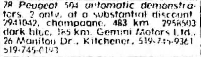 2973008 504 1978 FOUR DOOR SEDAN KITCHENER ON