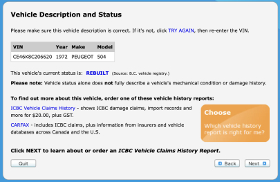 206620 504 1972 FOUR DOOR SEDAN BRITISH COLUMBIA BC