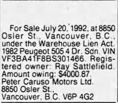303175 505 1981 FOUR DOOR SEDAN VANCOUVER BC