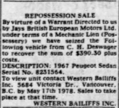 8231564 404 1967 FOUR DOOR SEDAN VANCOUVER BC