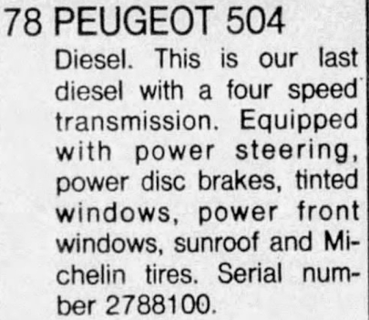 2788107 504 1978 4 DOOR STATIONWAGON BRITISH COLUMBIA BC