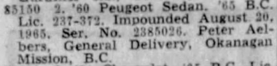 2385026 403 1960 FOUR DOOR SEDAN OKANAGAN MISSION BC