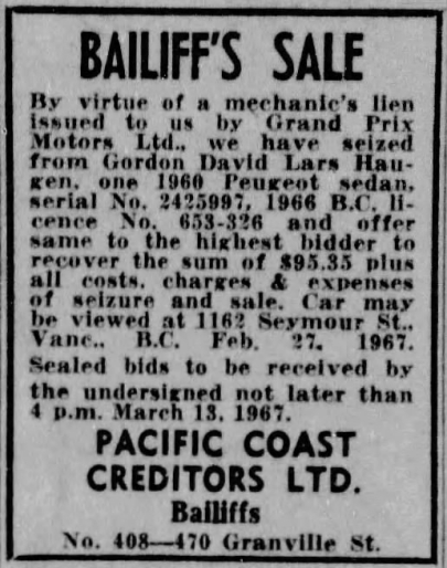2425997 403 1960 FOUR DOOR SEDAN VANCOUVER BC