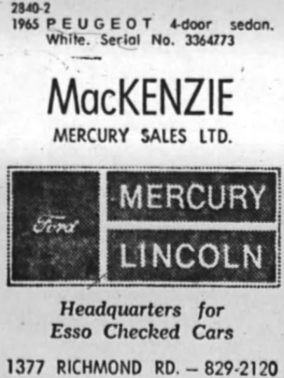 3265713 403 1965 FOUR DOOR SEDAN BRITISH COLUMBIA BC